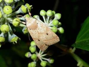 I have continued to check the Ivy clump near my house for moths most nights, still finding things on it feeding on the female flowers but certainly nowhere near the numbers I was getting a few weeks back. Good numbers of Chestnut and Yellow-line quaker are present normally, with the odd sighting of things like Green-brindled crescent, L-Album wainscot and Red-line quaker.